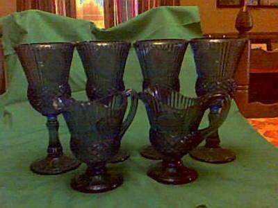 Title (ebay affiliate link): Antique Blue Stemwear and Creamers w/ George and Martha