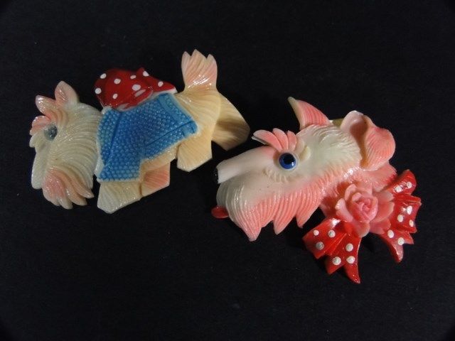 Title (ebay affiliate link): 2 Different Vintage 1950 Celluloid Plastic Scottie Westie Dog PIN Occupied Japan