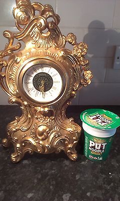 ANTIQUE GILT METAL CLOCK. FULL WORKING ORDER