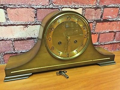 Title (ebay affiliate link): BEAUTIFUL VTG GERMAN LINDEN TWO-TONE-2 WOOD/DIAL MANTLE TAMBOUR DUAL CHIME CLOCK