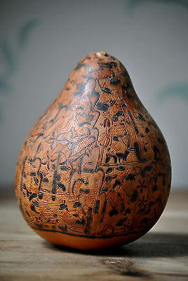 Vintage Finely Carved Gourd wood Peru Ecuador INCA South America village scenes