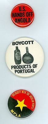 3 Vintage 1970s-80s African Liberation Peace Pinback Buttons US Hands Off Angola