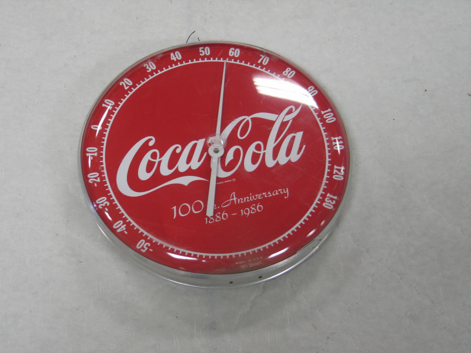 VINTAGE COCA-COLA THERMOMETER 100th Anniversary 1986-1986 ORIGINAL 12" DIAMETER