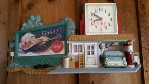Title (ebay affiliate link): VINTAGE COCA COLA BILL BOARD 50'S GARAGE 57 CHEVY, COKE WALL, SHELF CLOCK