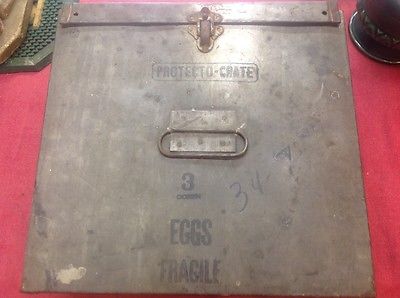 Title (ebay affiliate link): Old Vtg Farm Metal Tin Egg Protecto Crate 3 Dozen