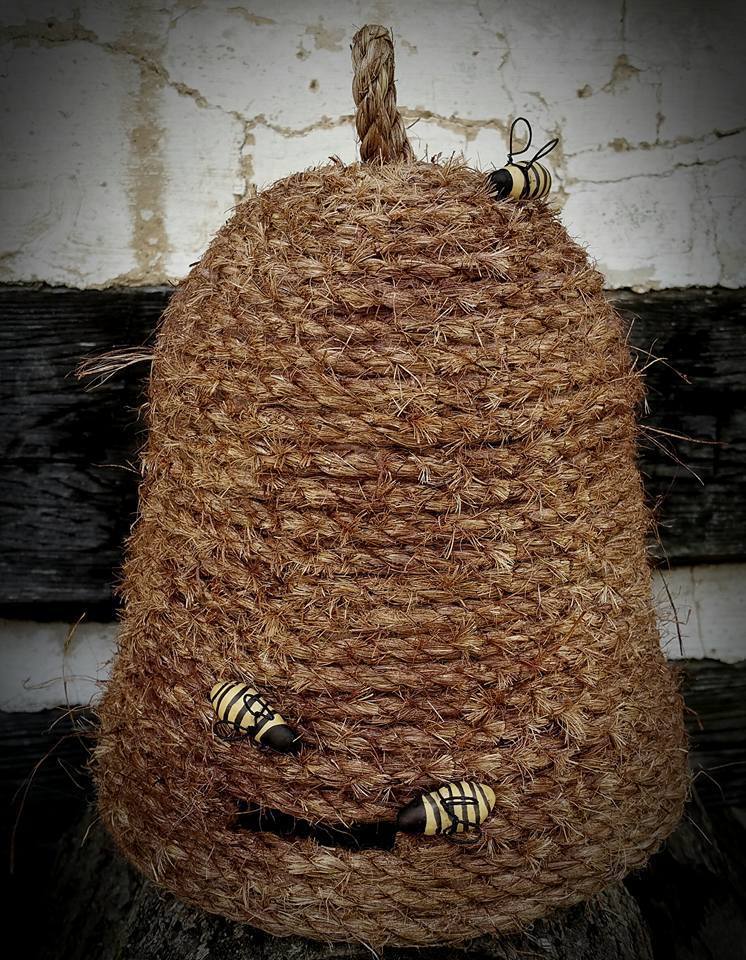 Title (ebay affiliate link): HANDMADE PRIMITIVE BEE SKEP W/ BEES * DECOR GARDEN COLONIAL COUNTRY FARMHOUSE