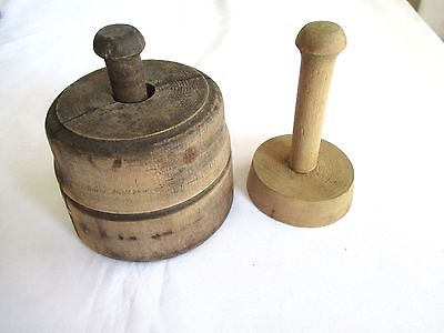LOT OF 2 PRIMITIVE WOODEN BUTTER MOLD STAMPS