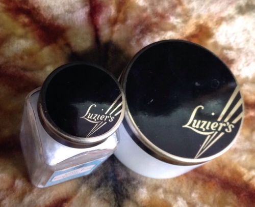 Title (ebay affiliate link): 2 Vintage Luzier's Face Powder Make Up Glass & White Milk Glass Kansas City MO