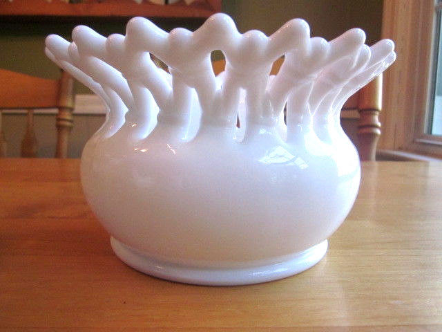 vintage WESTMORELAND WHITE MILK GLASS LATTICE LEMON FRUIT BOWL BASKET DISH 4" H