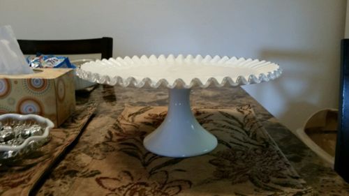 Title (ebay affiliate link): Vintage Fenton Silver Crest Pedestal Cake Plate Dessert Stand White Milk Glass