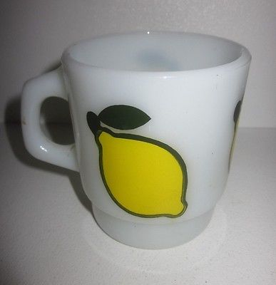 Title (ebay affiliate link): Vintage FIRE KING LEMON FRUIT COFFEE MUG Milk Glass Anchor Hocking