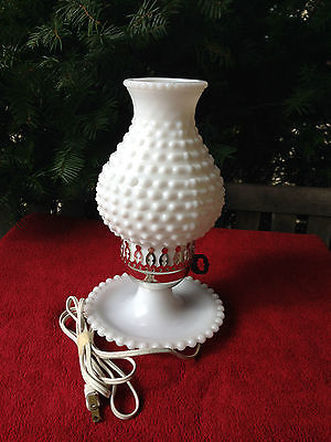 Title (ebay affiliate link): Fenton Hobnail electric lamp white milk glass key switch 9.5" Works Great!