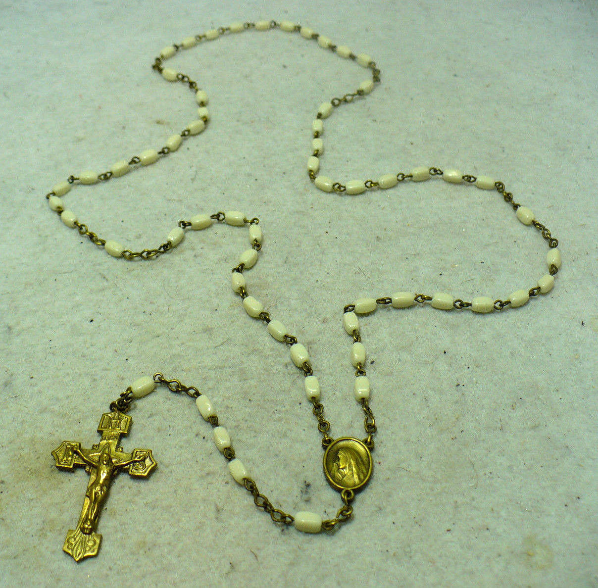 Title (ebay affiliate link): VINTAGE BRASS CZECH MILK GLASS "OUR LADY OF SORROWS" CATHOLIC ROSARY