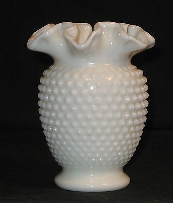 Title (ebay affiliate link): Rare Sized Vintage Fenton Hobnail Milk Glass 6" Double Crimped Vase Pre-1970s