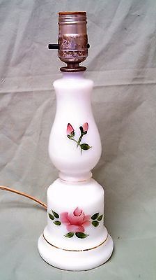 Vintage Milk Glass Table Boudoir Lamp with Hand Painted Pink Roses