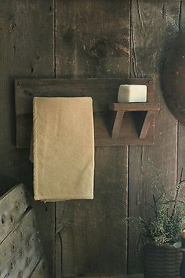 Primitive Early Homestead Look Sink Side Wall Rack Shelf w/Burlap Towel & Soap