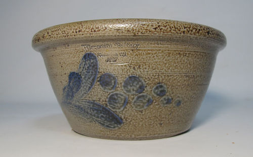 Wisconsin Pottery MEL Salt Glazed Stoneware Cobalt Flower Decorated Bowl #4 yqz