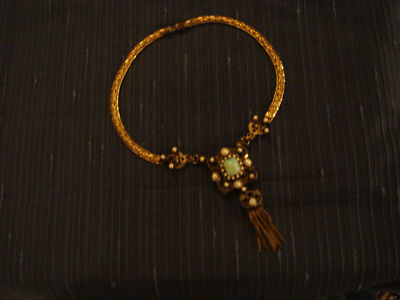 Title (ebay affiliate link): Solid Brass Antique Necklace w/faux gemstones & tassel