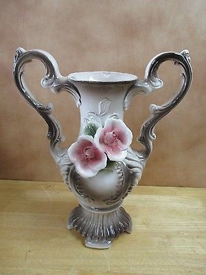 Title (ebay affiliate link): LARGE VINTAGE 15" CAPODIMONTE PORCELAIN VASE FLORAL DOUBLE HANDLE MADE ITALY