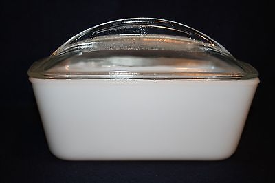 Title (ebay affiliate link): Westinghouse White Milk Glass Refrigerator Oven Loaf Dish Pan w/ Clear Dome Lid