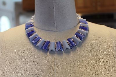 Title (ebay affiliate link): Vintage dark light blue Milk Glass Bead Choker Necklace Art Deco Design