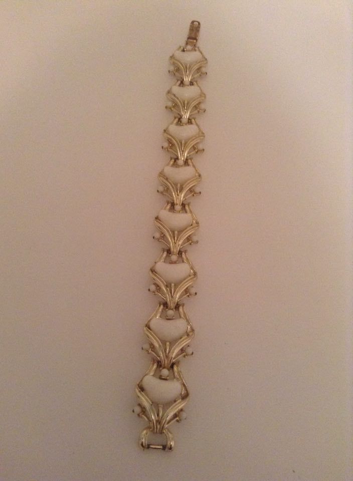 Vintage Milk Glass Gold Tone Bracelet by Cora