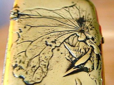 GENUINE ANTIQUE JAPANESE MEIJI PERIOD VESTA MATCH SAFE BRASS BIRD AND FISH NR