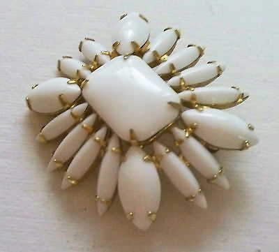 VINTAGE NAPIER 1930-40s MARQUISE ABSTRACT WHITE MILK GLASS FLORAL BROOCH-A+!
