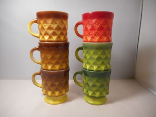 Title (ebay affiliate link): 6 VINTAGE ANCHOR HOCKING FIRE KING MILK GLASS KIMBERLY MUGS EXCELLENT