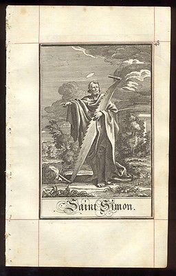 1710 COPPER PLATE BIBLE ENGRAVING/RED RULED/THE APOSTLE ST SIMON!