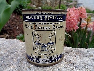 Title (ebay affiliate link): VINTAGE BLUE CROSS BRAND OYSTER TIN CAN BALTIMORE MD ONE PINT SIGN COUNTRY STORE