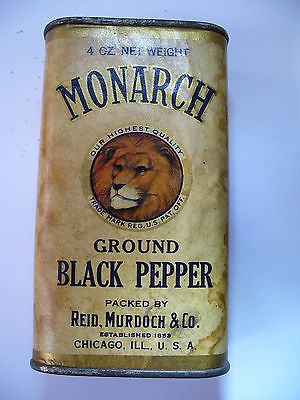 Title (ebay affiliate link): Vintage MONARCH BLACK PEPPER Cardboard & Metal Spice Tin - 4 OZ. - 4 1/2" Tall