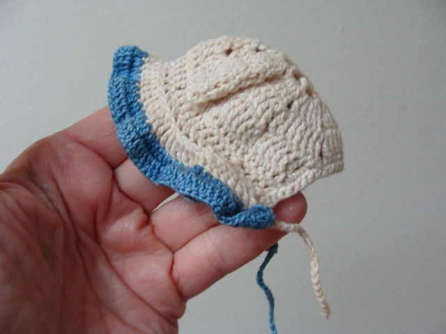 Antique Vintage Hand Crochet Doll Bonnet small doll