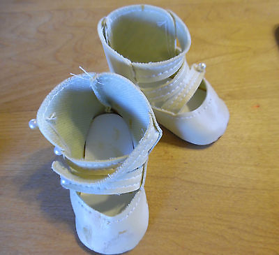 pair of ivory doll shoes~3 side buttons~great on vintage/antique doll