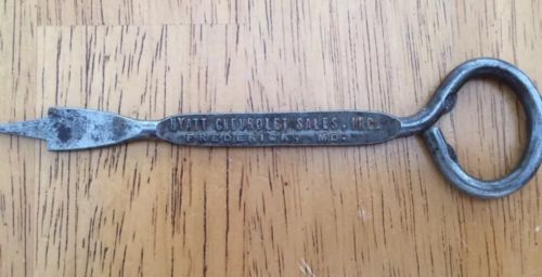 Old Metal Hyatt Chevrolet Advertising Bottle Opener Frederick MD Pat'd 1912