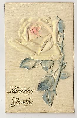 ANTIQUE VINTAGE HIGHLY EMBOSSED BIRTHDAY GREETINGS YELLOW PINK ROSE FLOWER 1909