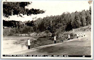 Rib Lake, Wisconsin RPPC Photo Postcard "Scene on Highway 102 at Spirit Lake"