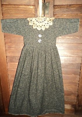 GRUNGY~PRIMITIVE WALL~CUPBOARD~DOLL DRESS BLACK & GRAY FLORAL FOLK ART DECOR