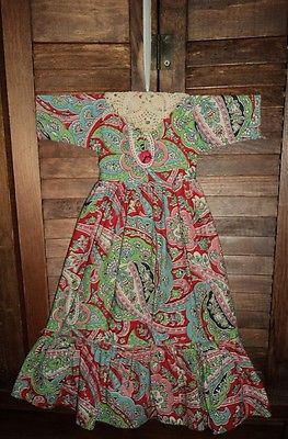 GRUNGY~PRIMITIVE WALL~CUPBOARD~DOLL DRESS MULTICOLOR PAISLEY FOLK ART DECOR