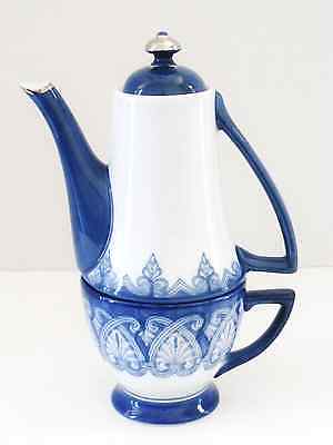 Bombay Porcelain 3pc.Tea Set Cobalt blue Silver trim Pot and Cup stackable