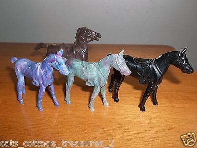 Vintage 4 Hard Plastic Horse Figurines Race & Western Horse ~1960-70s ~ U.S.A.