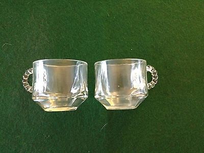 Set of 2 Hazel Atlas Glass Clear Orchard Crystal Boopie Bead Handle Cups
