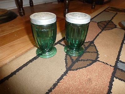 Vintage Depression Glass Shakers - Aquamarine 4 1/4" With Lids -Rare Color