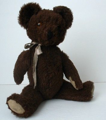 Title (ebay affiliate link): 14" Antique/Vintage Dark Chocolate Brown Jointed Teddy Bear,Glass Eyes, Squeaker
