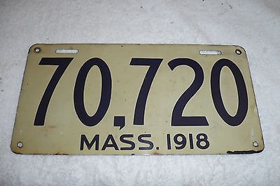 Vintage 1918 Massachusetts Metal Car License Plate 5 digit ORIGINAL #70,720