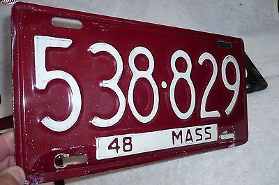 Vintage 1948 Massachusetts Aluminum Car License Plate 6 Digit ORIGINAL # 538-829