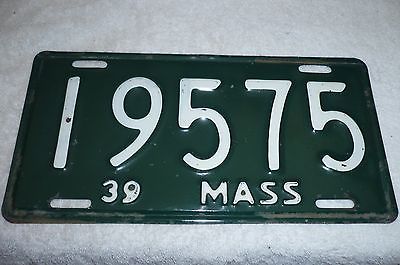 Vintage 1939 Massachusetts Metal Car License Plate 5 digit ORIGINAL # 19575