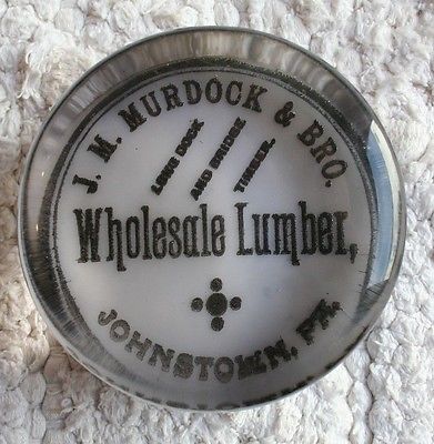Title (ebay affiliate link): Antique Glass Paperweight J.M. Murdock & Bro. Wholesale Lumber JOHNSTOWN, PA