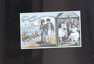 1800's metamorphic trade card,White's Steamers,steamboat,Rockaway NY,boat
