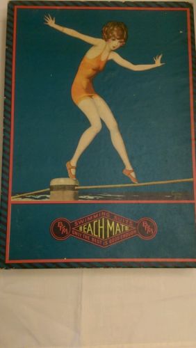 Title (ebay affiliate link): vtg 1930's BEACH MATE swim suit box with graphic of beautiful girl